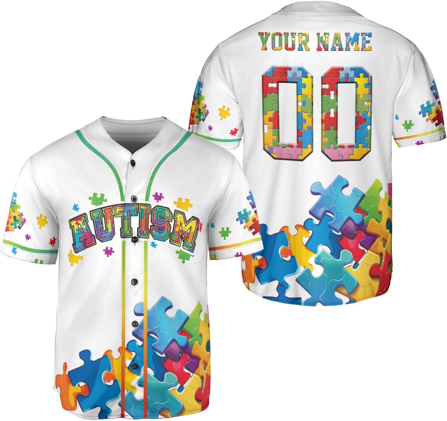 Celebrate autism awareness and personal expression with this Personalized Autism Awareness Baseball Jersey. Designed with a vibrant puzzle pattern and your custom name, this jersey is more than just a shirt – it's a statement of support, strength, and inclusion. Whether you're wearing it for Autism Awareness Month in April, supporting a loved one, or simply spreading love and positivity, this soft, breathable jersey makes the perfect gift for autism warriors, families, and baseball lovers alike. Show your pride and raise awareness in comfort and style.